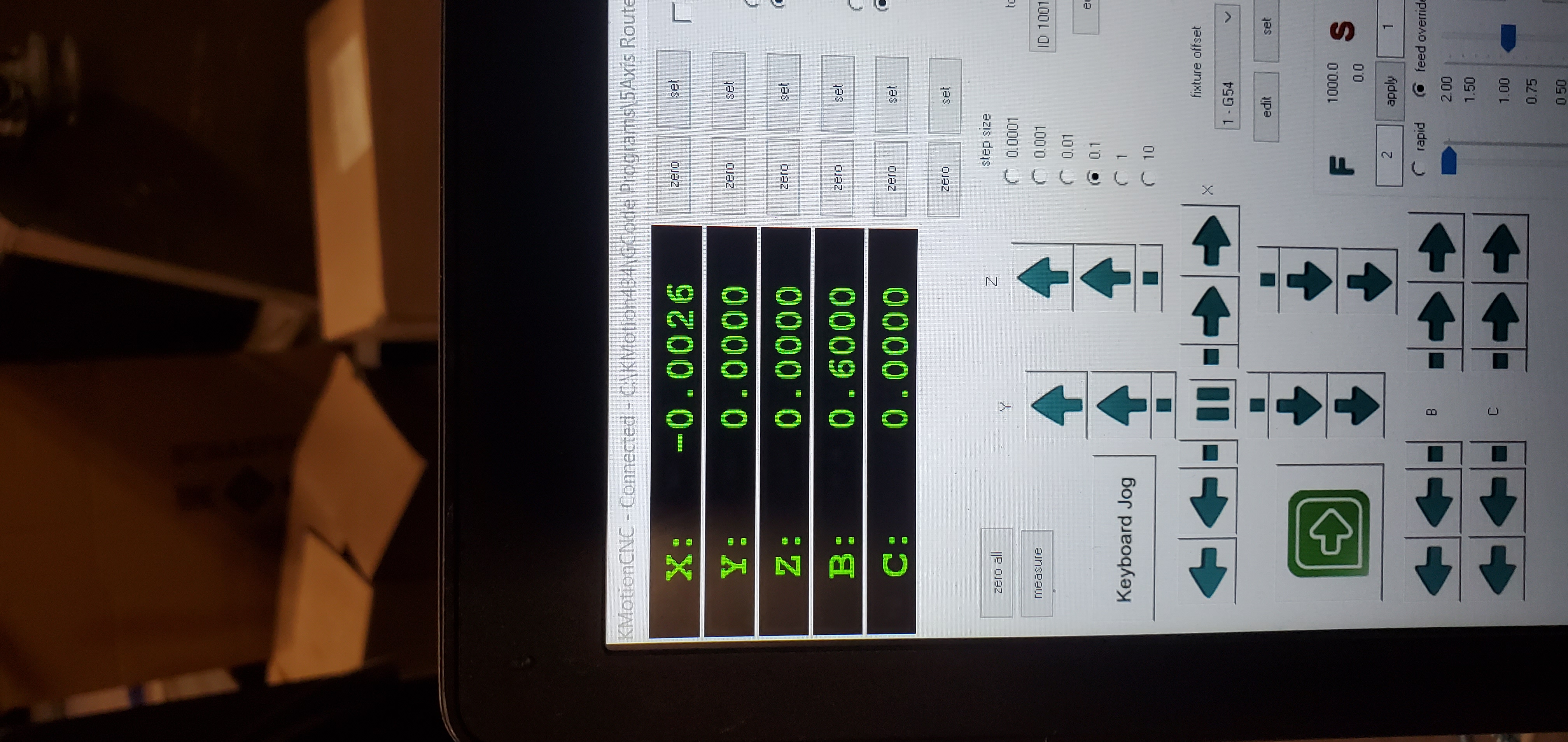 XYZ DRO would read 0.0000,while all the axis where moving. B and C would show the angles. Sometimes as well, the DRO's would all read 0.000 at the start of the motion and once they returned to 0.0000, the XYZ DRO values would not read 0.0000. There would be some random vales sow up. I have had all zero's sow at times but when I hit the INIT some random number would pop up on The DRO. Check attached pic.
