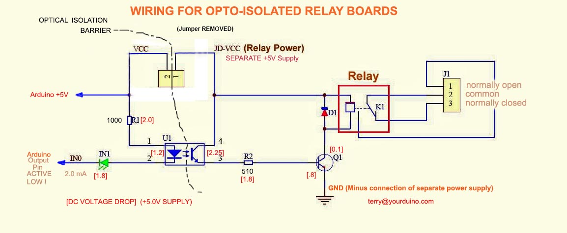 Regarding the relay board: I couldn't find a specification or even a pinout description. I think it is expecting a TTL signal so it may not work with the relay driver outputs on KStep. The relay driver outputs are like switches and wouldn't provide a high/low voltage without adding a pull down resistor. It would probably be simpler to use a 3.3V LVTTL Output from KFLOP such as IO24 and IO25 from KFLOP JP4 Pins 15 and 16. If you make a diagram we can check it for you.