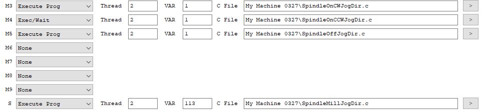 The only remaining minor issue is that when the spindle is running, if I adjust the spindle speed slider the spindle turns off. If I then click the ON CW button the spindle restarts and goes to the new speed set by the slider. I'm using the Spindle C programs provided with Kmotion, i.e., SpindleMillJogDir.c, SpindleOnCCWJogDir.c, SpindleOnCWJogDir.c and SpindleOffJogDir.c. Why is the Spindle turning off?
