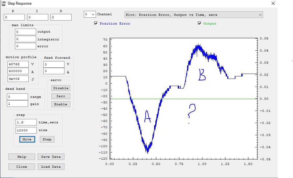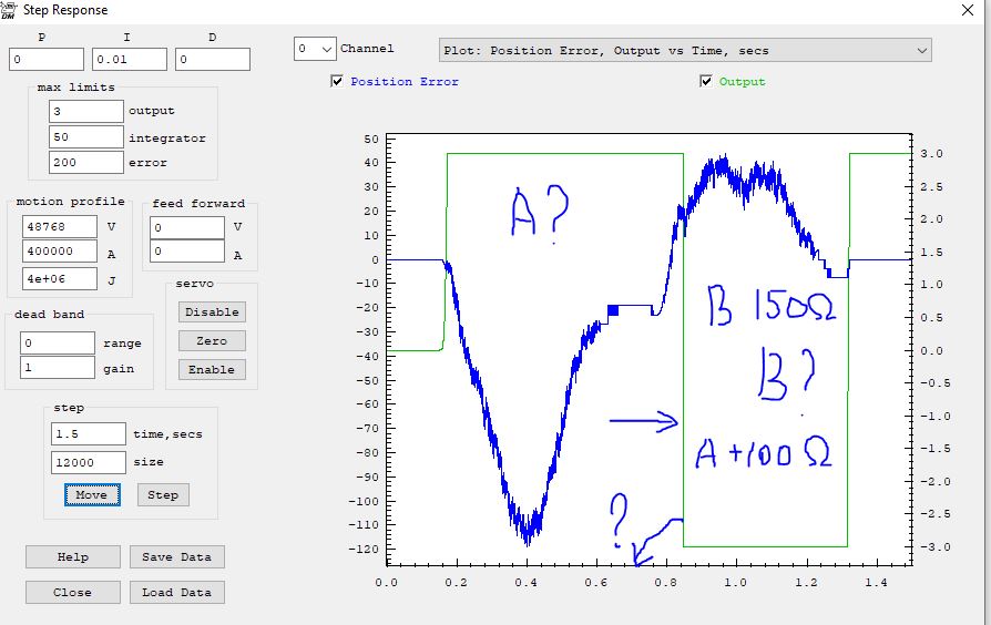 Ok. The first plot is the open loop errors. +/-10 steps when stopped +/- 110 steps when moving.