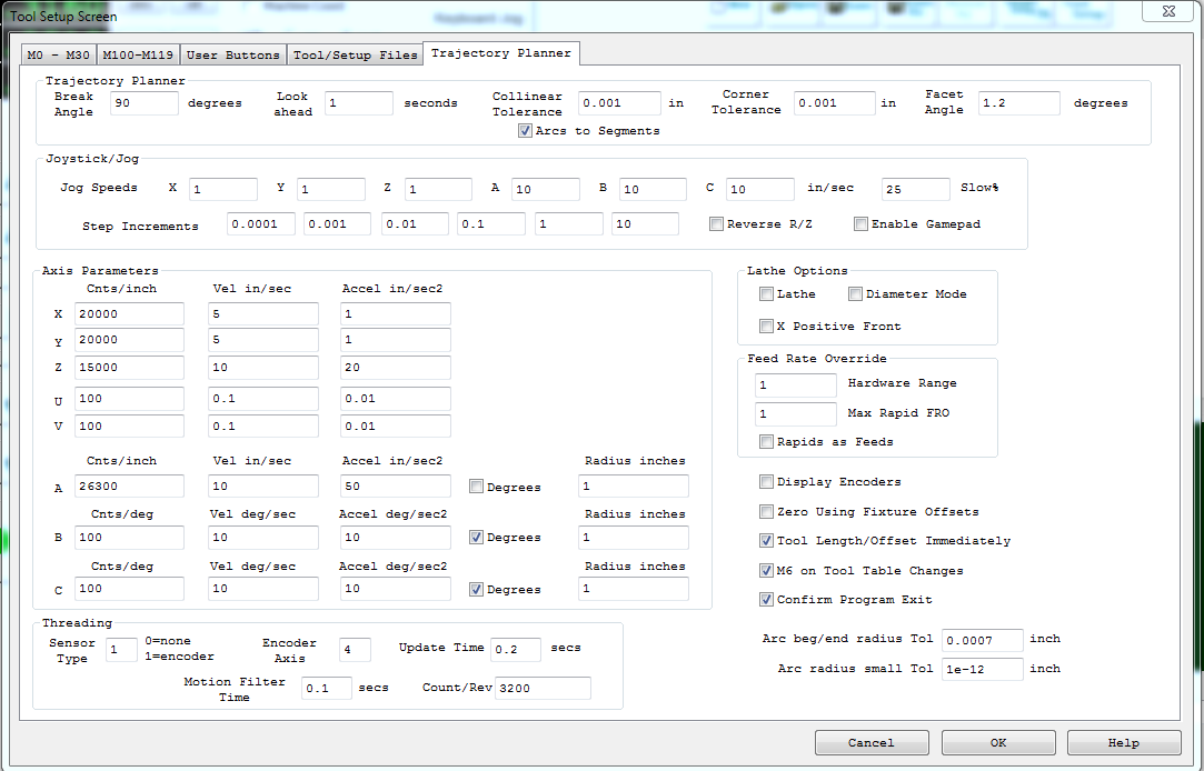 I don't understand what you're asking. But Velocity of 5 inches/sec and Acceleration of 1 in/sec2 means it would take 5 seconds to accelerate to max speed. That would be very slow acceleration.