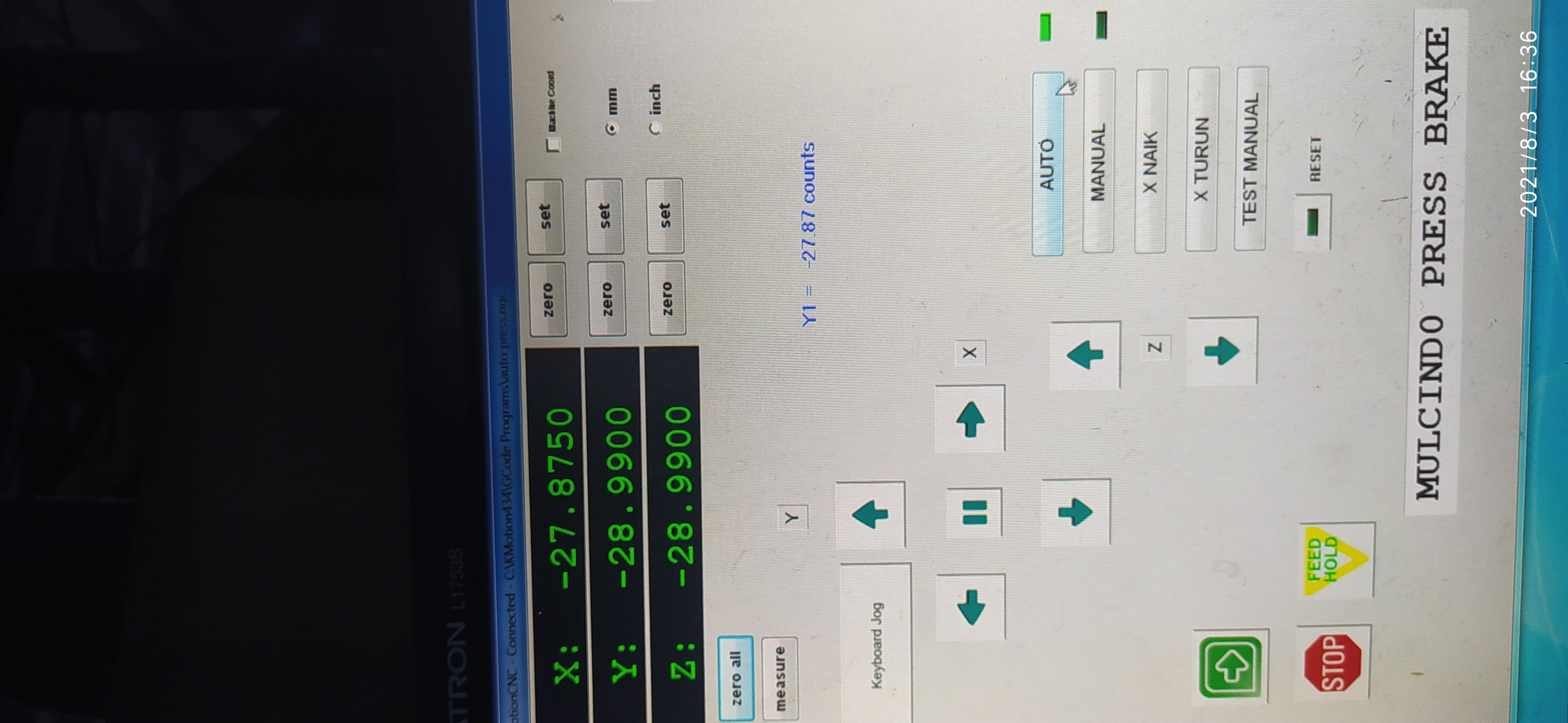 to continue the g code after the feedhold is released, the movement is smooth according to the feedrate that I specified in the g code line. only sometimes the plate bending results change degrees. but not much.