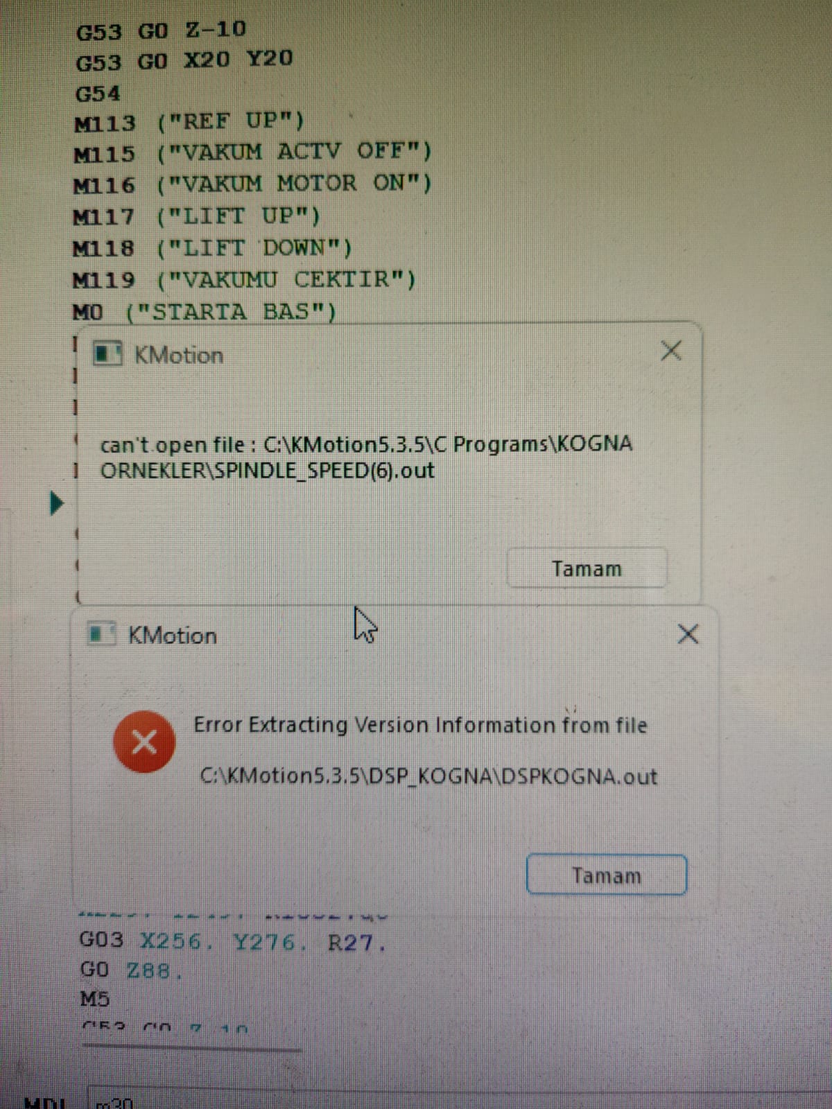Since I started using the second Kogna, sometimes every two hours and sometimes every 10 minutes it gives the errors "Error Extracting Version information from file" and "can't open file : xxx.out", I tried all versions from 5.3.3 to 5.3.6 but I couldn't solve the problem, I extracted the C programs from their current folders and put them in the "C Programs" folder and ran them but my problem is the same, I couldn't go to the section about 485 because I couldn't run the card properly.