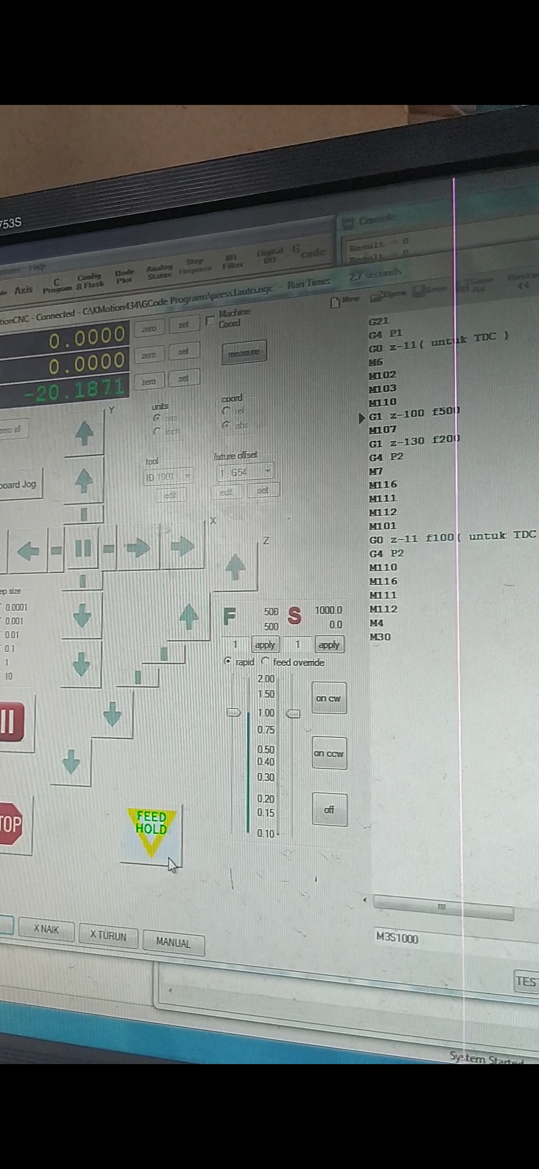 how to make the jog panel in kmotion CNC work?