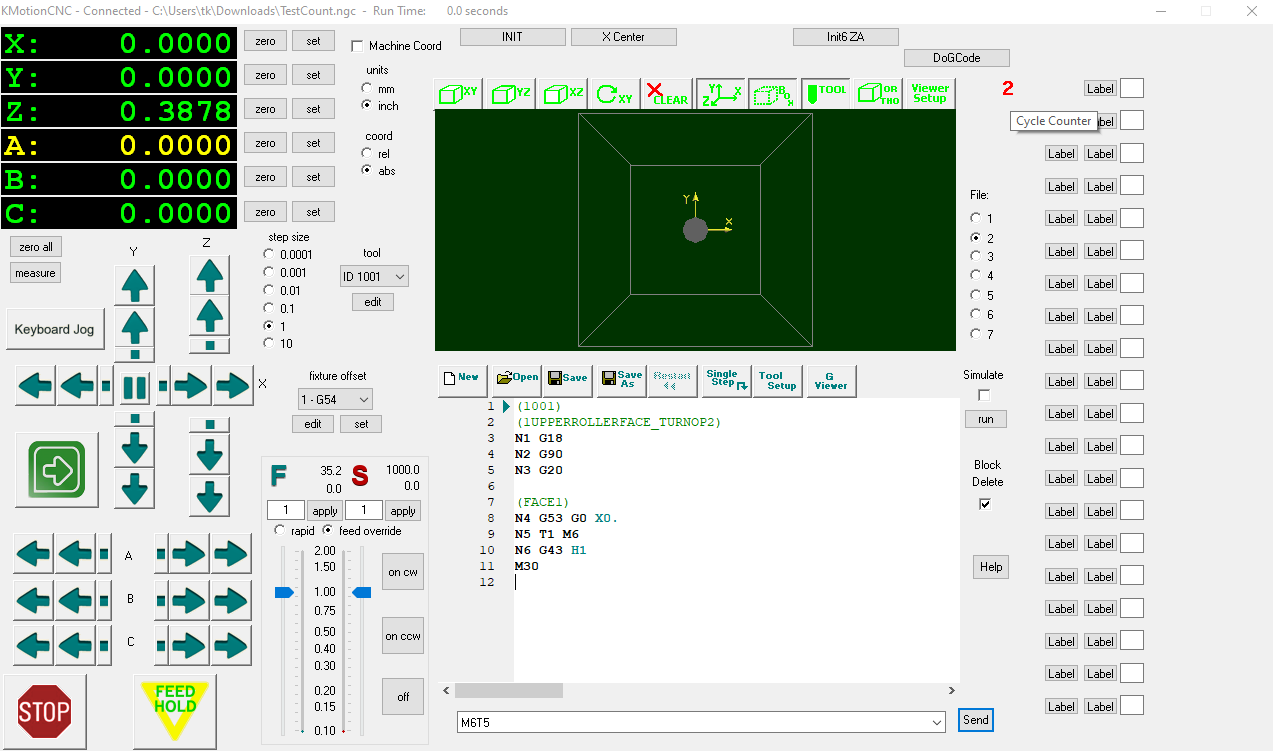 I would like to add a cycle counter to the KMotionCNC screen. Ideally it would have a zero reset button and a display to show cycles run since last reset.