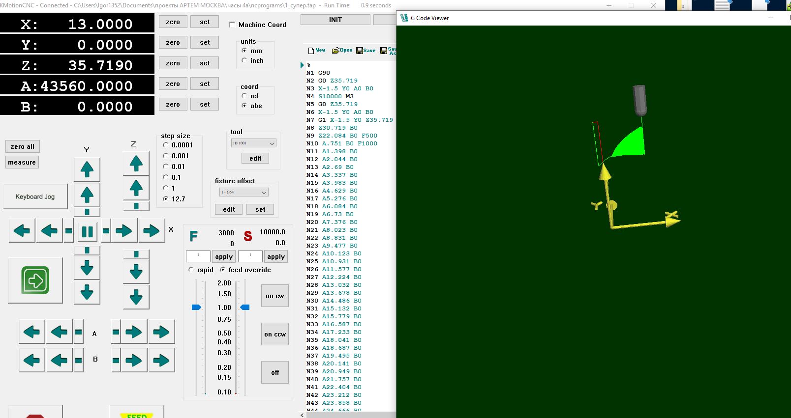 Good afternoon Tom. I have a problem with displaying a 4 axis toolpath. 5 axis is displayed correctly. how to solve this misunderstanding. I use KFLOP 4.35b Build 13:25:11 Jan 16 2019 . in match3 the trajectory is displayed correctly during the simulation. thank you hope you can help
