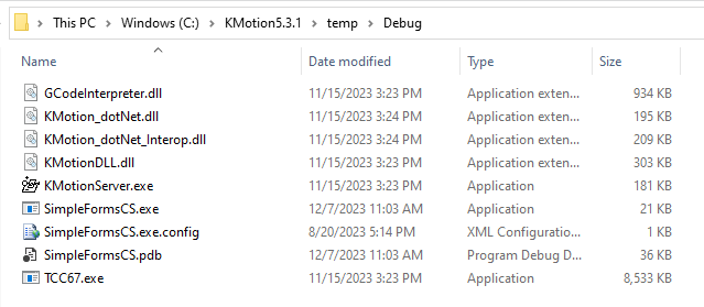 Issue #2: Armed with the 5.3.1 updated KFlop, I then update my dotnet apps as usualy. This process involves copying the following KMotion files from the KMotion Debug|Release folder: